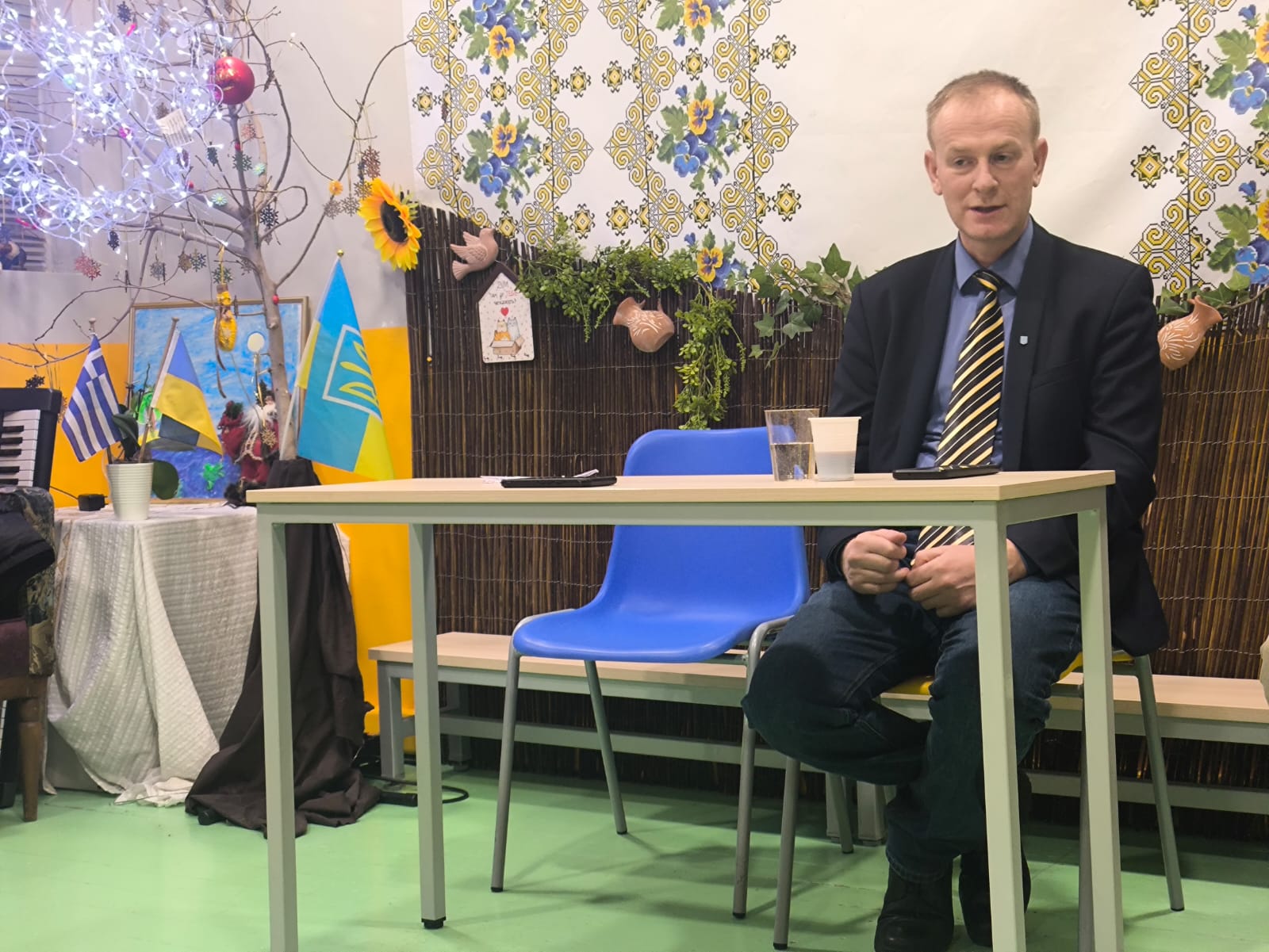 - και ο διευθυντής του 50ού Δημοτικού Σχολείου Αθηνών, κ. Βανγγέλης Μώκος, ο οποίος με θέρμη συνεργάζεται με το ουκρανικό σχολείο εδώ και πολλά χρόνια.