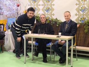 – Βαγγέλης Κοσμίδης: μίλησε για την πολύτιμη εμπειρία συνεργασίας του με το Θέατρο της Μαριούπολης και για το πώς αυτή η δημιουργική σχέση συνεχίζεται ακόμη και σήμερα, παρά τις τεράστιες δυσκολίες. Μια παρέμβαση έκανε επίσης, μαζί με τον Βαγγέλη Κοσμίδη —που εκείνη τη στιγμή βρισκόταν στη Λετονία— ο συνεργάτης του, ο ηθοποιός από τη Μαριούπολη Vladislav Piatin-Ponomarenko.
